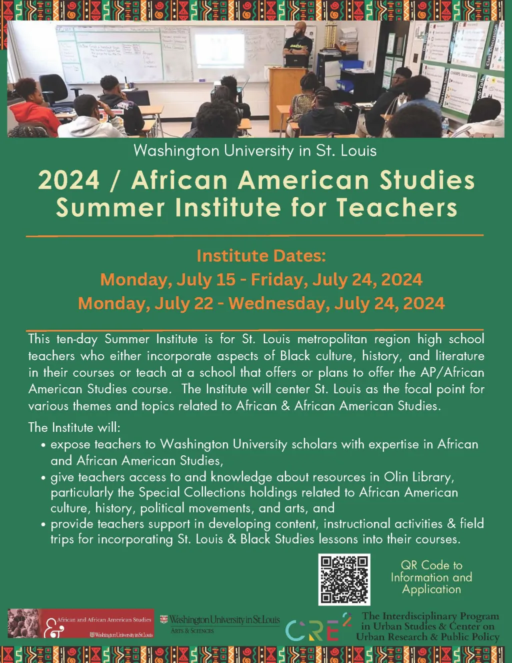 - expose teachers to Washington University scholars with expertise in African and African American Studies to deepen their knowledge of the field,